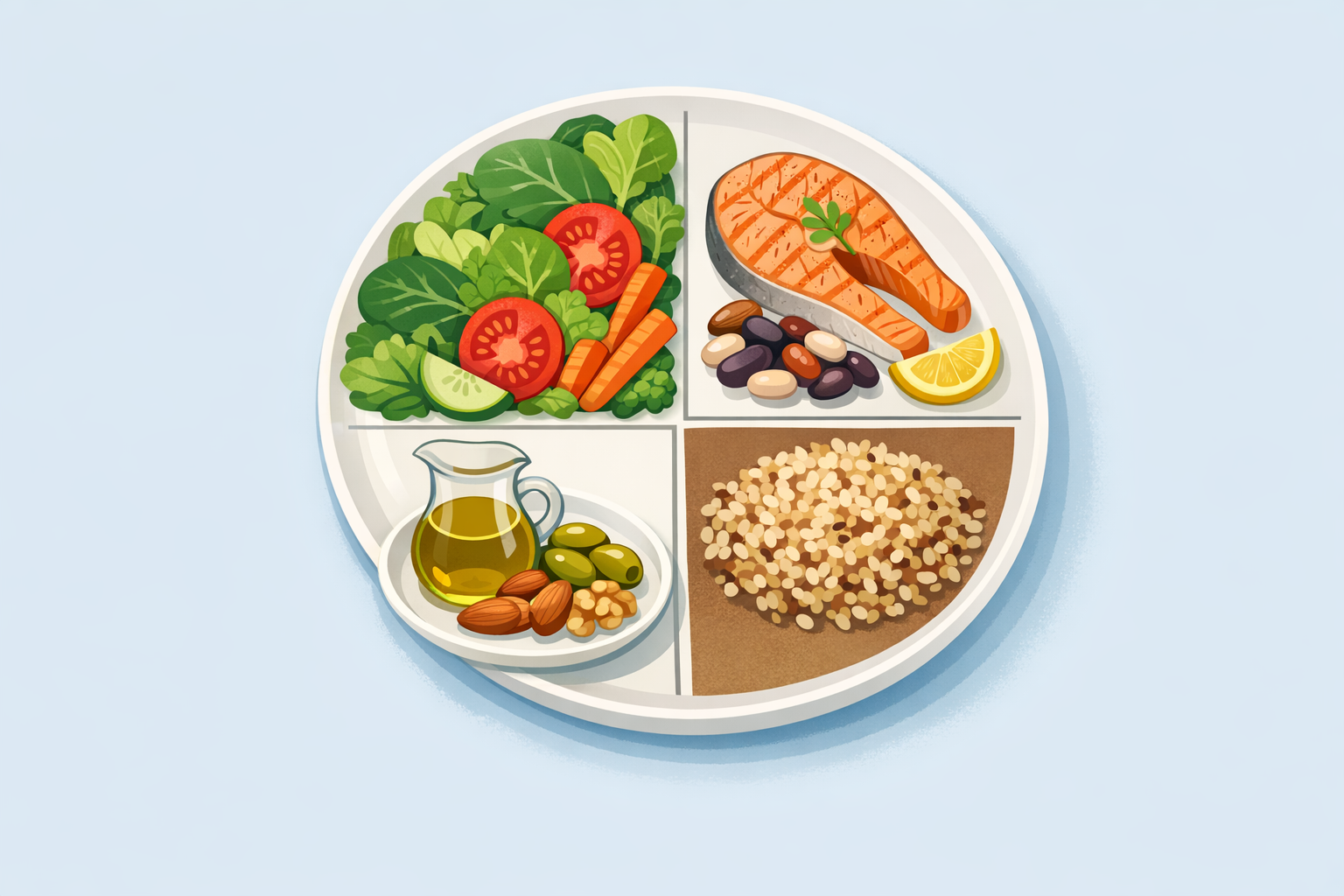 A DASH diéta lényege: sok zöldség és gyümölcs, teljes kiőrlésű gabonák, sovány fehérjék, korlátozott nátriumbevitel és telített zsírok mérséklése.